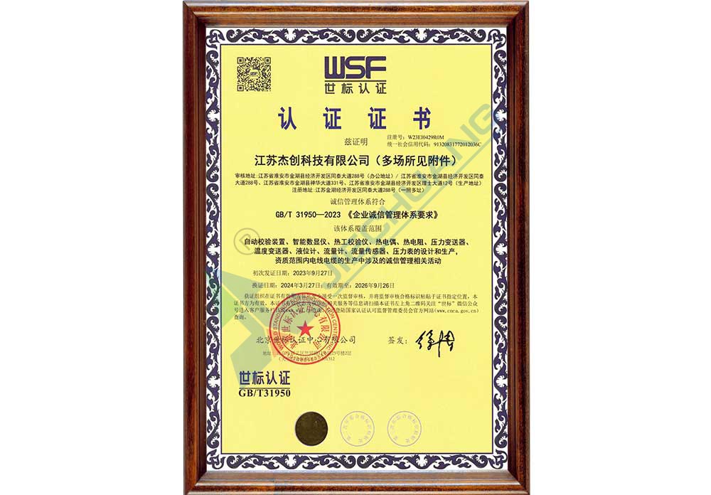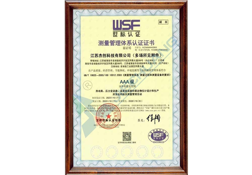 測量管理體系證書