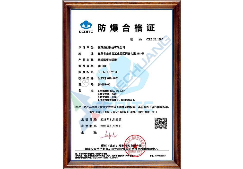 ·取得一體化溫度變送器防爆證